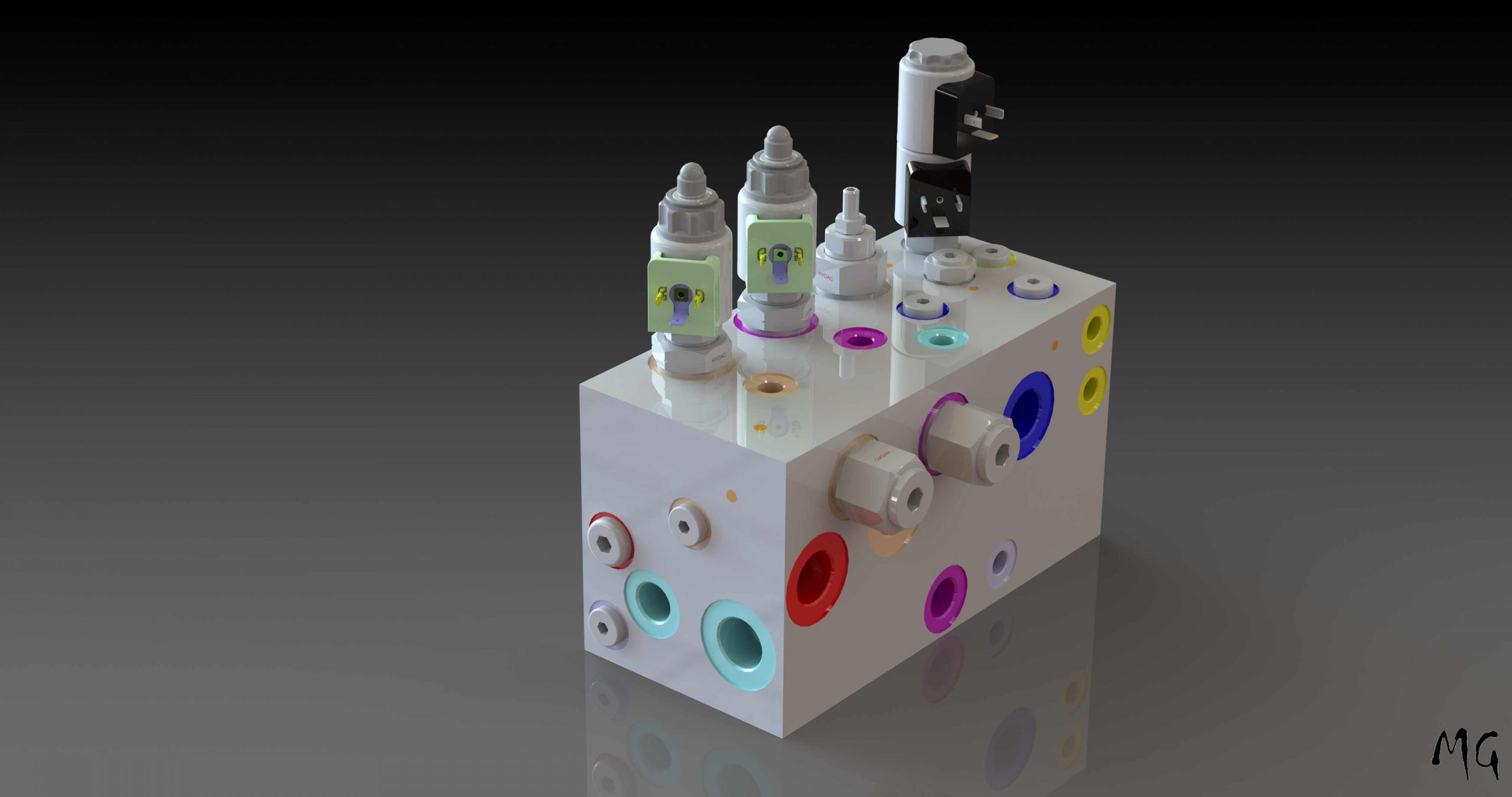 Below are some examples of hydraulic manifolds i have designed using Solidworks. Using supplied schematics designs were created to suit customer needs, used on various different applications, including industrial, mobile and agricultural machinery.
