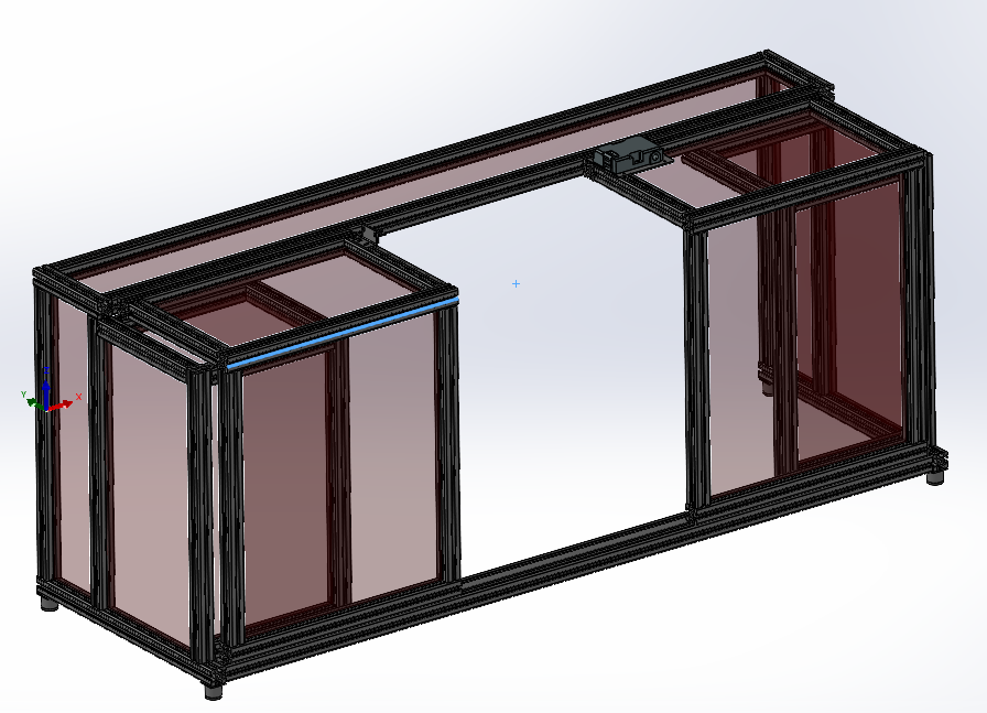 Using Solidworks, I was tasked to design a safety screen that would fit within the envelope of the test bench.